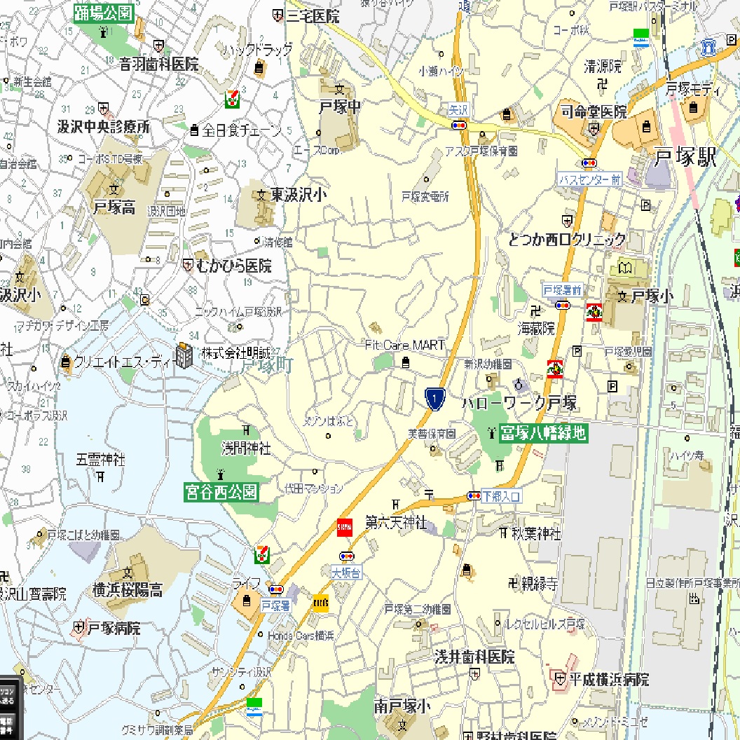 国道1号線下り戸塚警察署交差点を右折。一つ目の信号を右折。約500メートル進んだ右側にそろばん塾がある十字路を右折。約100メートル左側に当社があります。